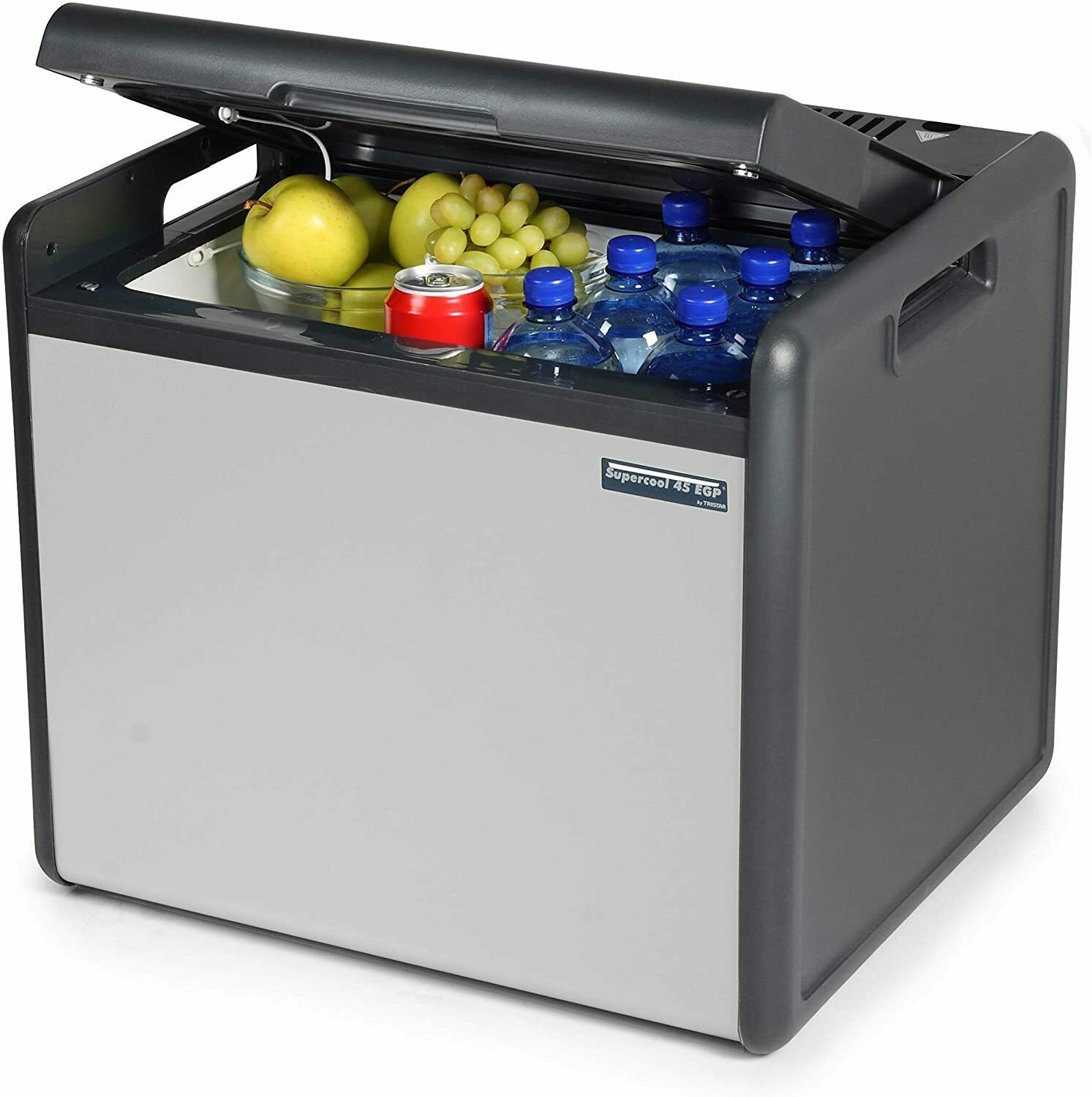 The Tristar cool box has a volume of 39 litres, which gives you plenty of space to store your refreshments and even two litres bottles fit in easily. The front plate of this cool box is made out of stainless steel with integrated sturdy handles, giving a stylish look.