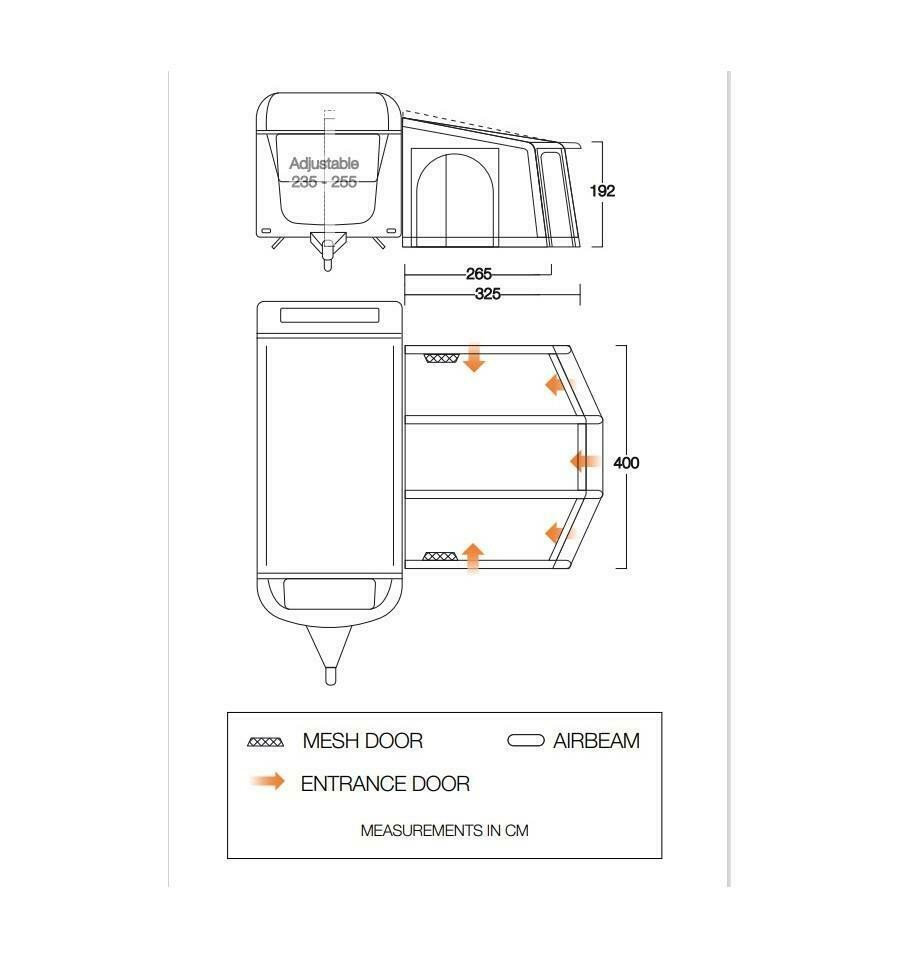 - Optional Mesh Door Pack Available – Mesh doors to increase the flow of air within your awning while keeping bugs out