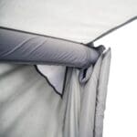 This awning features removable panels. This is a great feature as it not only gives you more options and flexibility it also means that you can remove the panels to lower the pitching weight of the awning. The pitching weight is the weight of the awning that you will have to slide into the awning rail on your vehicle. So by being able to lower this weight it makes it much easier to put into position. The fact the panels can be removed also means on those beautiful hot days you can remove the panel altogether to bring the outside in.