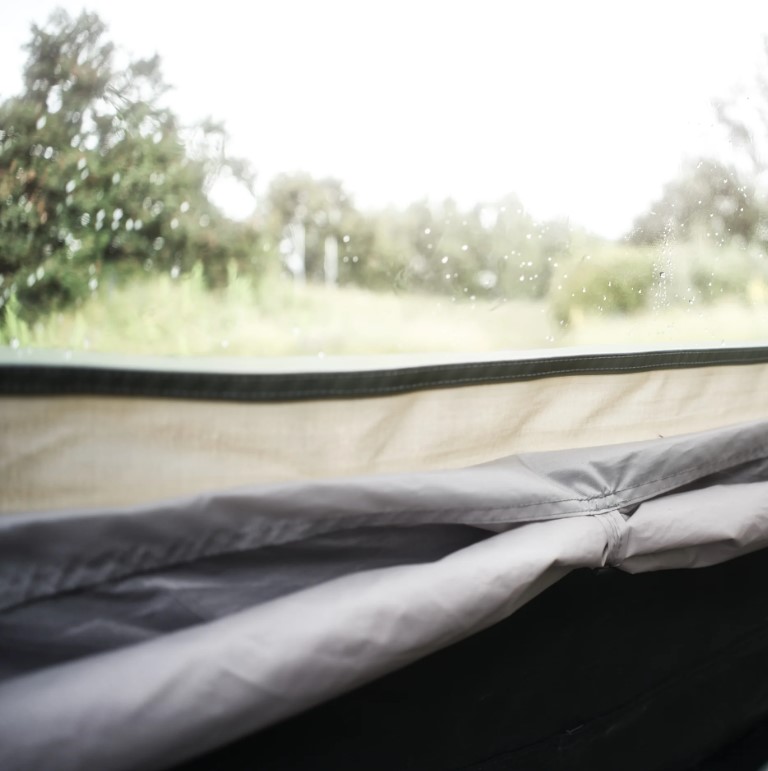 This is an all weather, premium fabric that will last for years. The high performance coating on the fabric gives it an extremely high weatherproof rating and helps protect it and you from the harmful U.V. rays. The fabric also has that luxury cotton touch on the outer, making it feel as good as it looks. At it’s core this is a 300D premium polyester fabric with an extremely high tensile strength, so high that it does not need to be rip stop. The fabric is made to highest standard available which gives it the highest possible tensile strength making it extremely touch and durable. The thread is dyed before the fabric is sewn into sheets making it is the same colour throughout, so it will not fade. The fabric is also anti-condensation, which means when condensation builds up inside your awning the fabric allows that moisture to soak into the fabric, rather than beading and then dripping down. The moisture in the fabric then dries out naturally during the day.