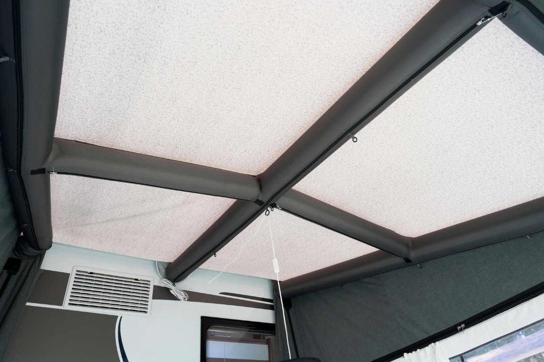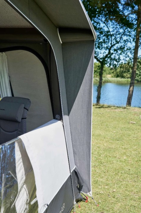 Thanks to the advanced Smart Air System, all tubes are connected, so the awning inflates from a single valve for convenience and stability, and deflates quickly via two outlets. A connection pad, supplied as standard, can be folded to create a snug fit against the caravan side.