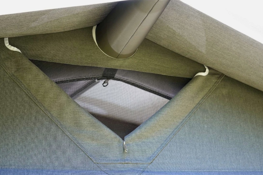 For flexibility, the front and side panels can be fully unzipped to transform the Aura into a wide sun canopy, or rolled aside for extra doorways and airflow. A veranda function (with pole included) allows part of the front to be opened while maintaining shade and ventilation.