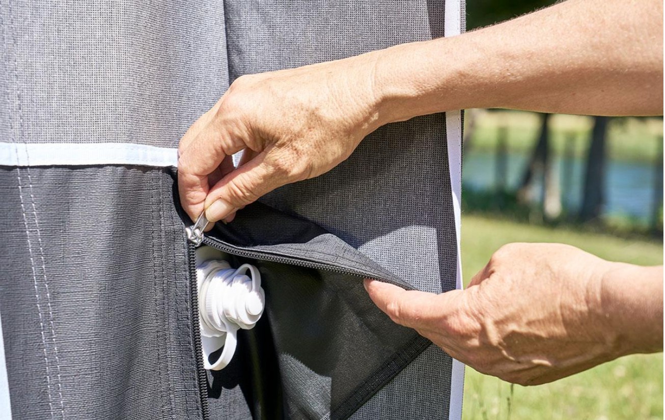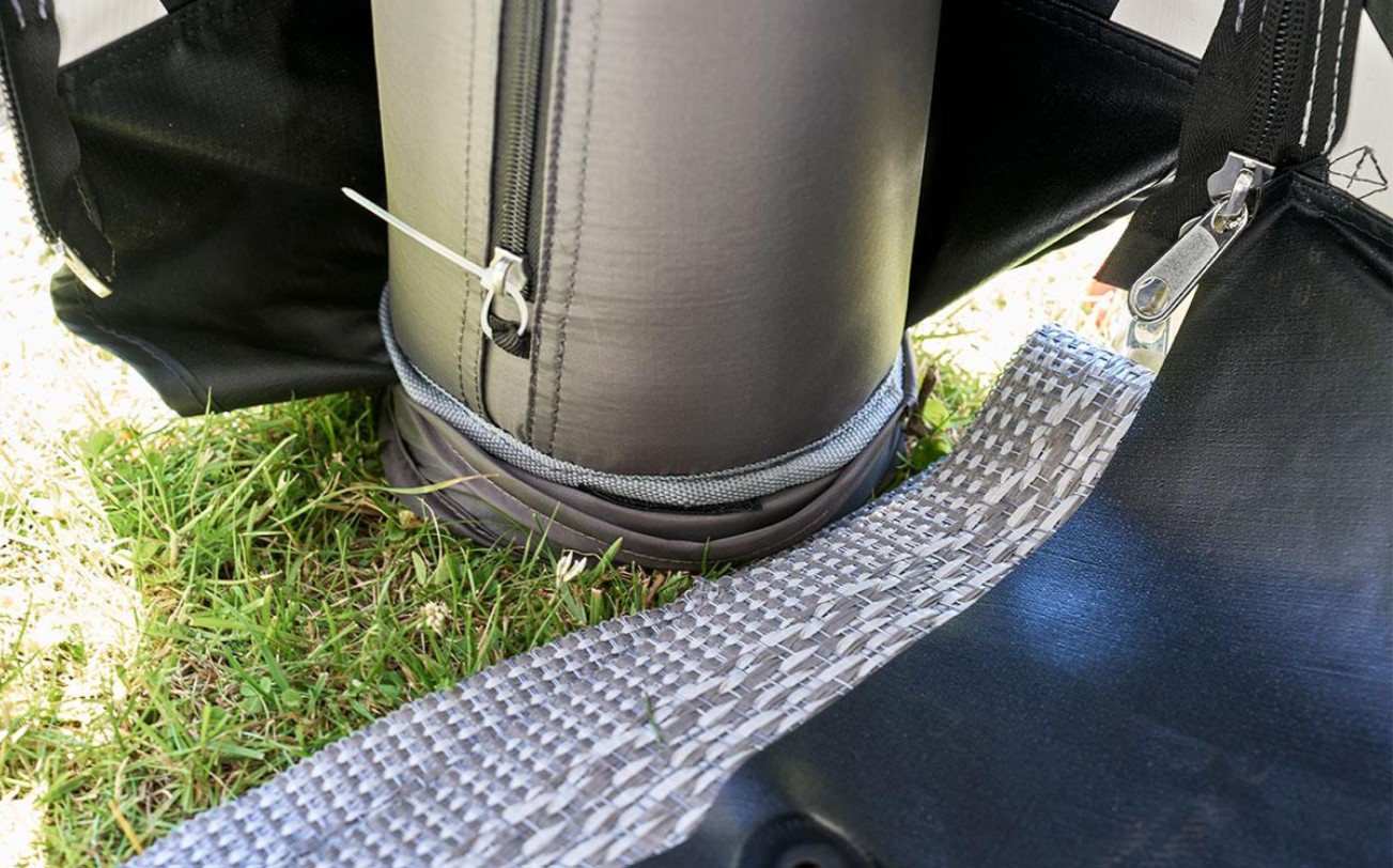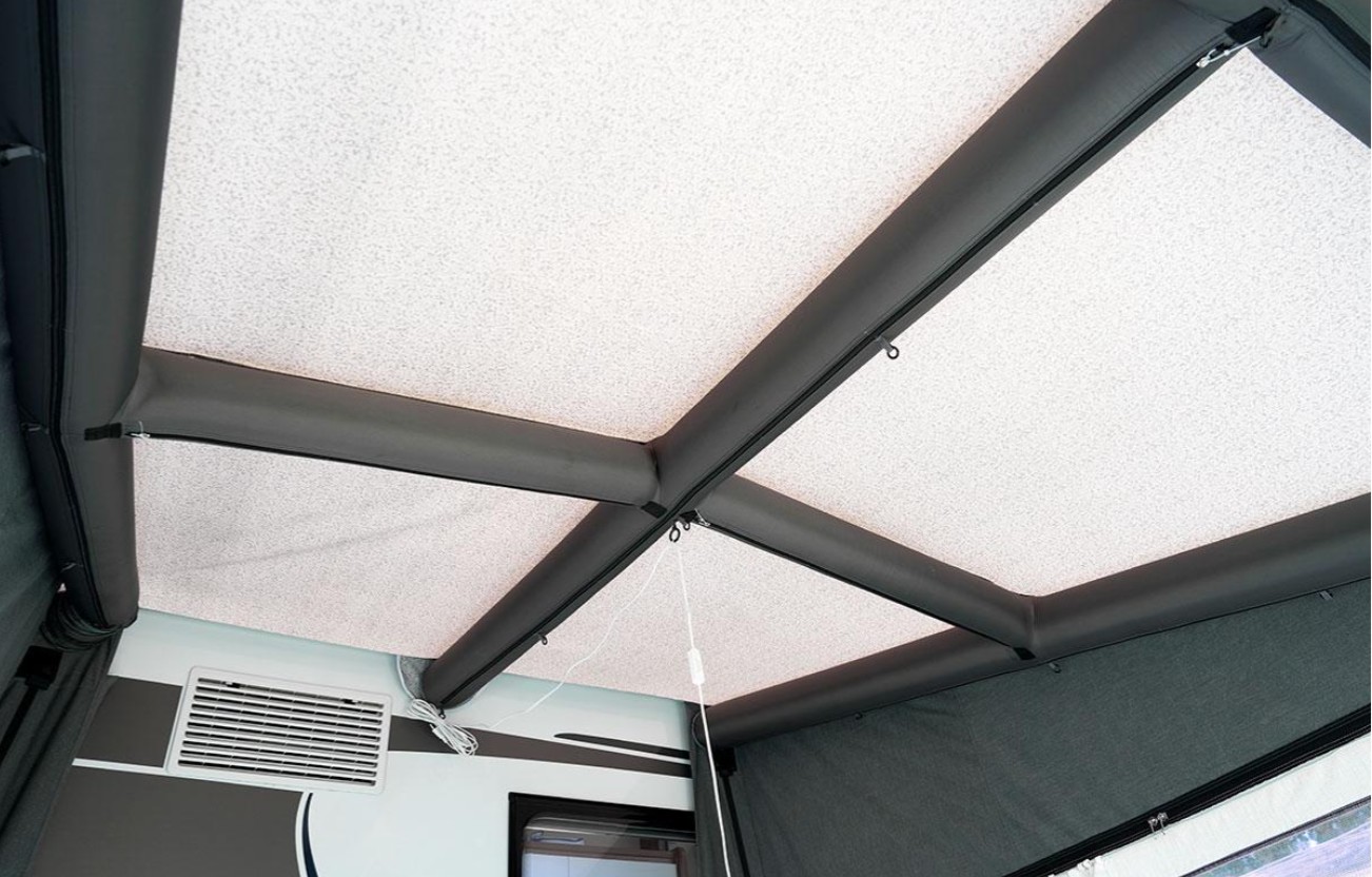 Thanks to the advanced Smart Air System, all tubes are connected, so the awning inflates from a single valve for convenience and stability, and deflates quickly via two outlets. A connection pad, supplied as standard, can be folded to create a snug fit against the caravan side.
