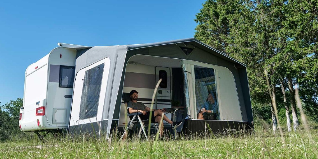 Finished in a light grey/dark grey colourway and suitable for caravans with an attachment height of 240–260 cm, the Ventura Air Aura 330 Awning combines Scandinavian design, generous space, and reliable quality for more enjoyable trips.