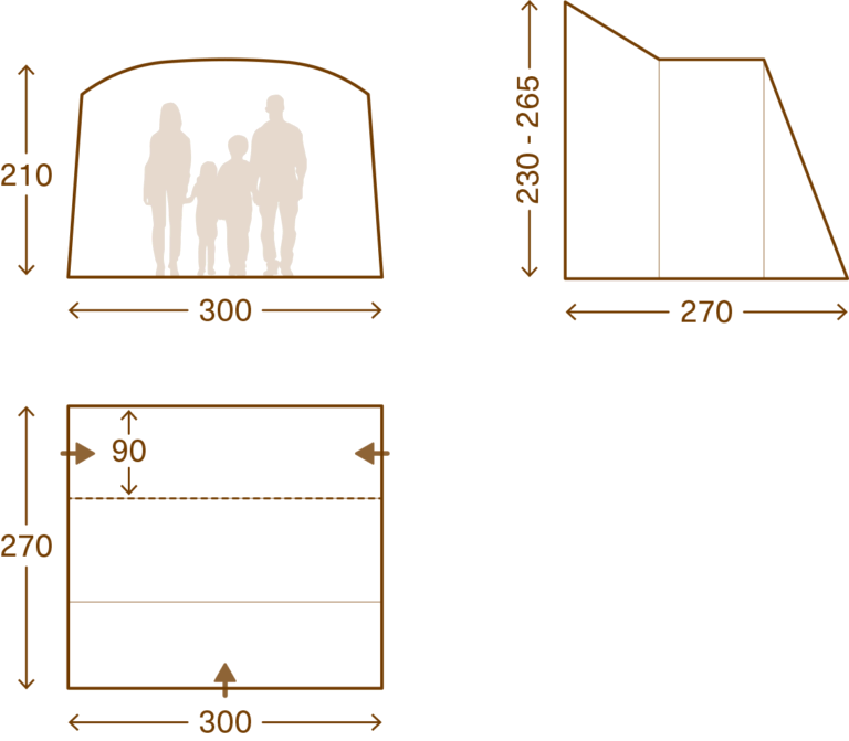 - Dimensions: 300W × 210H × 270D cm