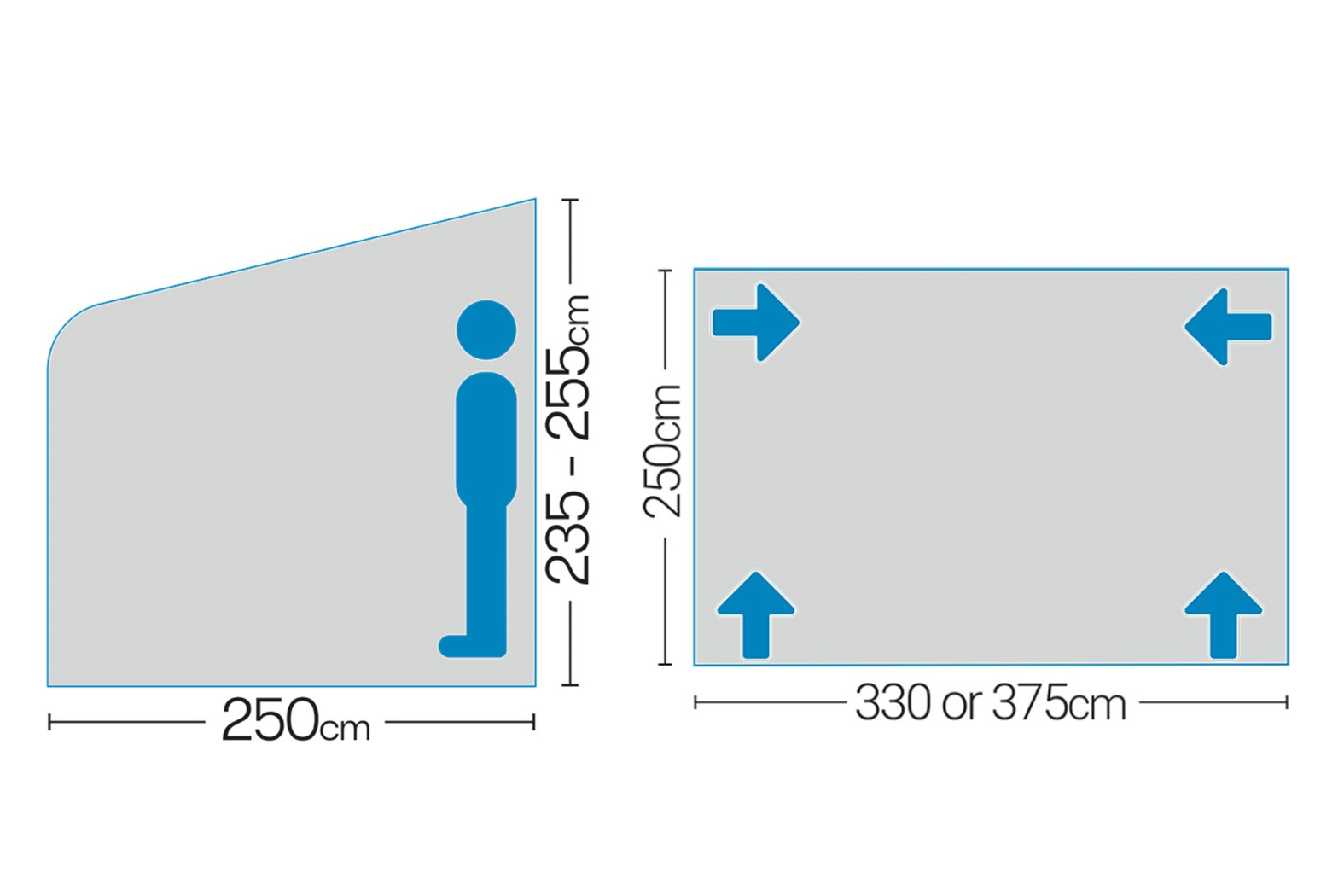 The removable front and side panels make this easier to pick up and slide though your awning channel, helping to make this awning easier to erect. It also allows you to use the awning without the panels as a premium air sun canopy. The Vega also comes with double beading (both 4 and 6mm) so it can be used on a caravan or motor home/camper (height dependant).
